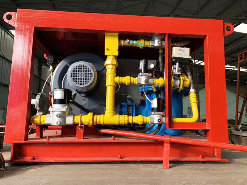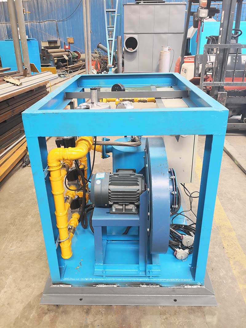 中間包烘烤器:包括燃燒器、鼓風(fēng)機(jī)、助燃風(fēng)管道系統(tǒng)和煤氣管道系統(tǒng),所述助燃風(fēng)管道系統(tǒng)一端連接鼓風(fēng)機(jī),另一端接入位于燃燒器前的煤氣管道系統(tǒng),還包括通過(guò)控制煤氣管道閥門(mén)開(kāi)閉自動(dòng)調(diào)節(jié)溫度的控制系統(tǒng),所述燃燒器為1-5個(gè)(根據(jù)膜胎尺寸確定),中間包工作層受熱均勻,易脫模節(jié)能效果明顯。